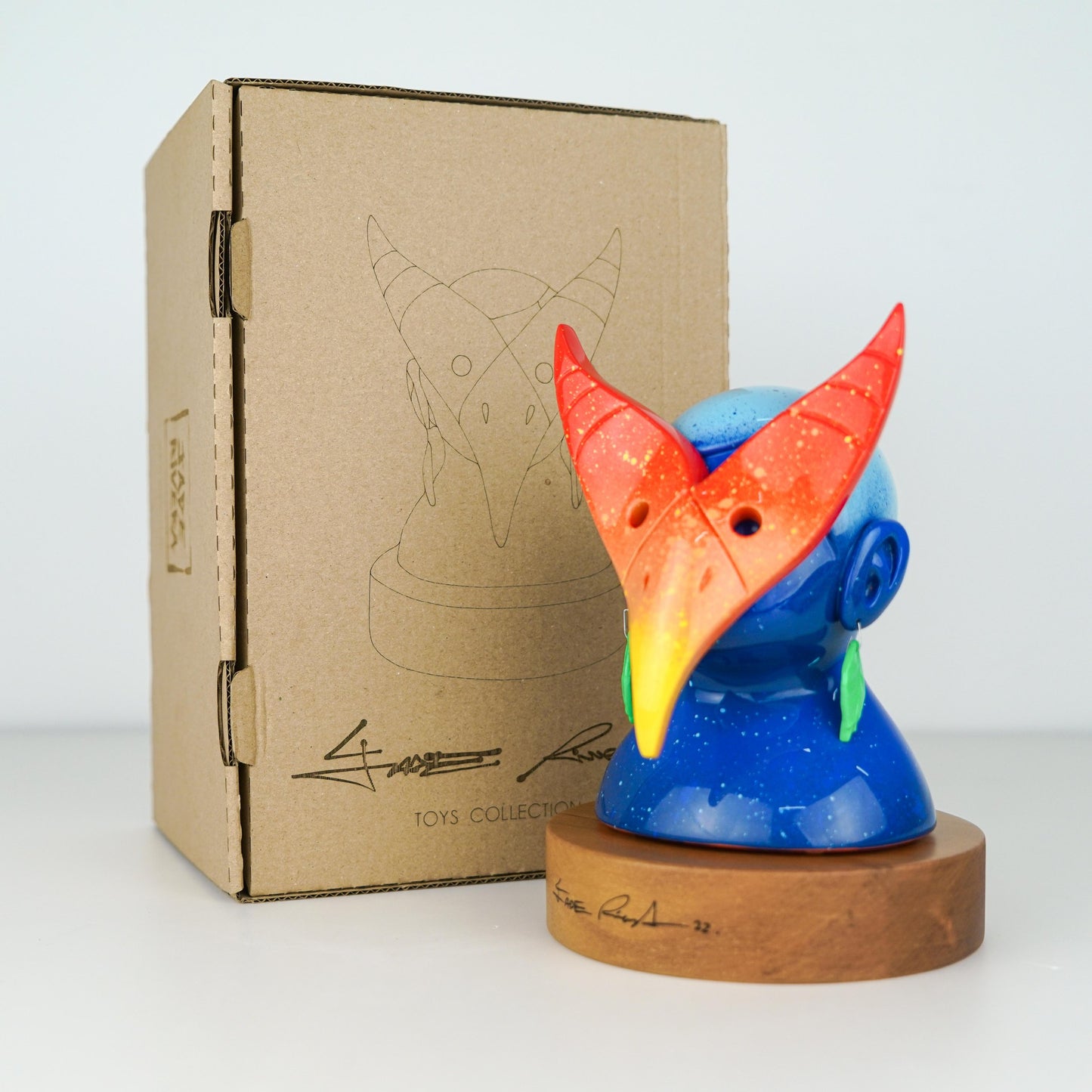 Media: Sculpture cast in resin / Size: 13 x 14 x 19 cm. (5.1" x 5.5" x 7.5") / Serie: Open / Details: Hand painted, signed and certificated by the artist. / Shipping worldwide (15 days). Do not include taxes from the receiving country. / Note: The price includes the wooden base.