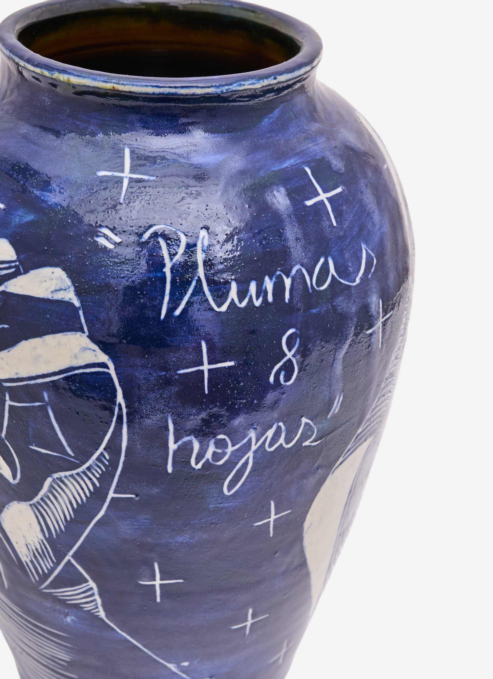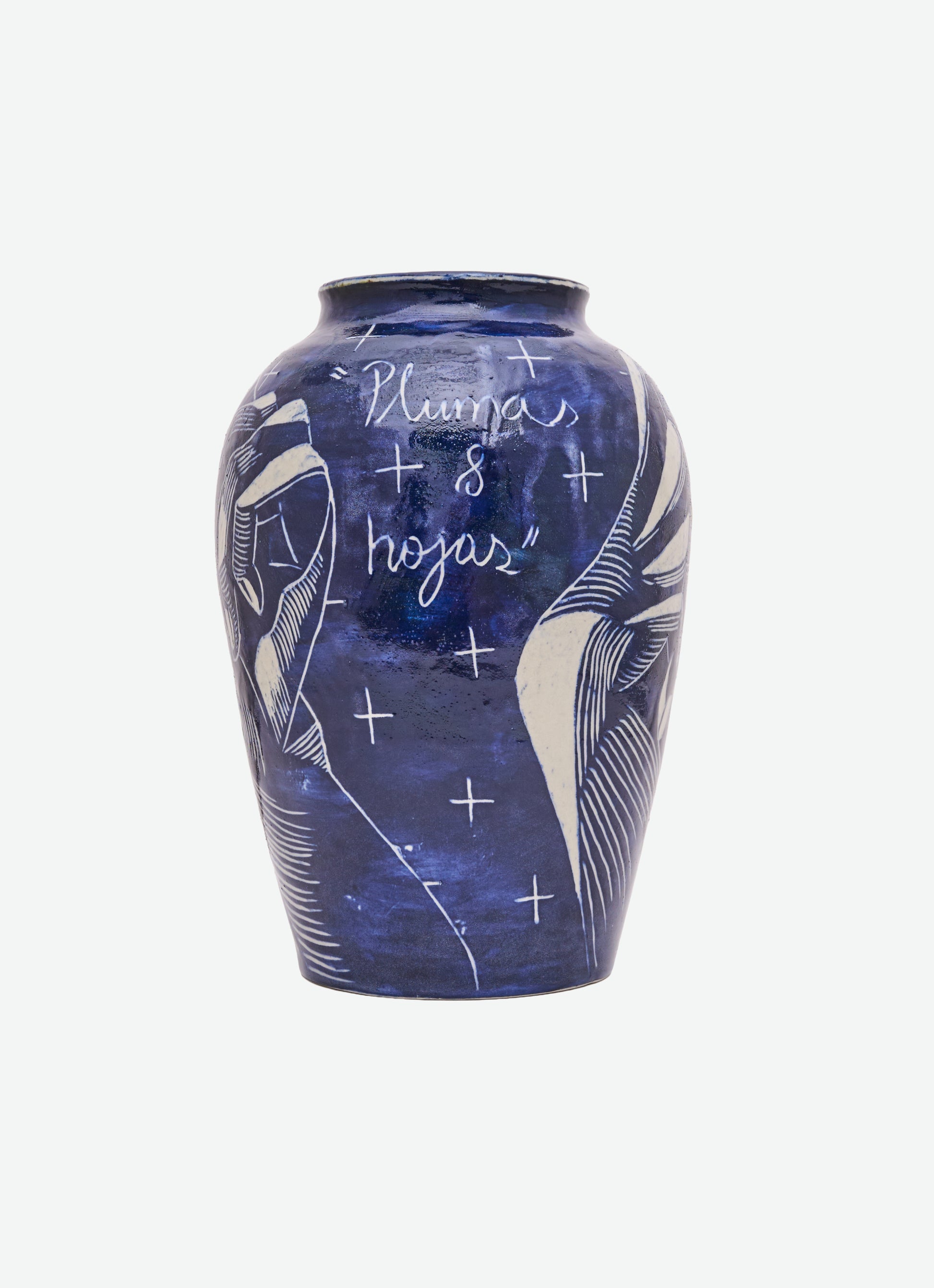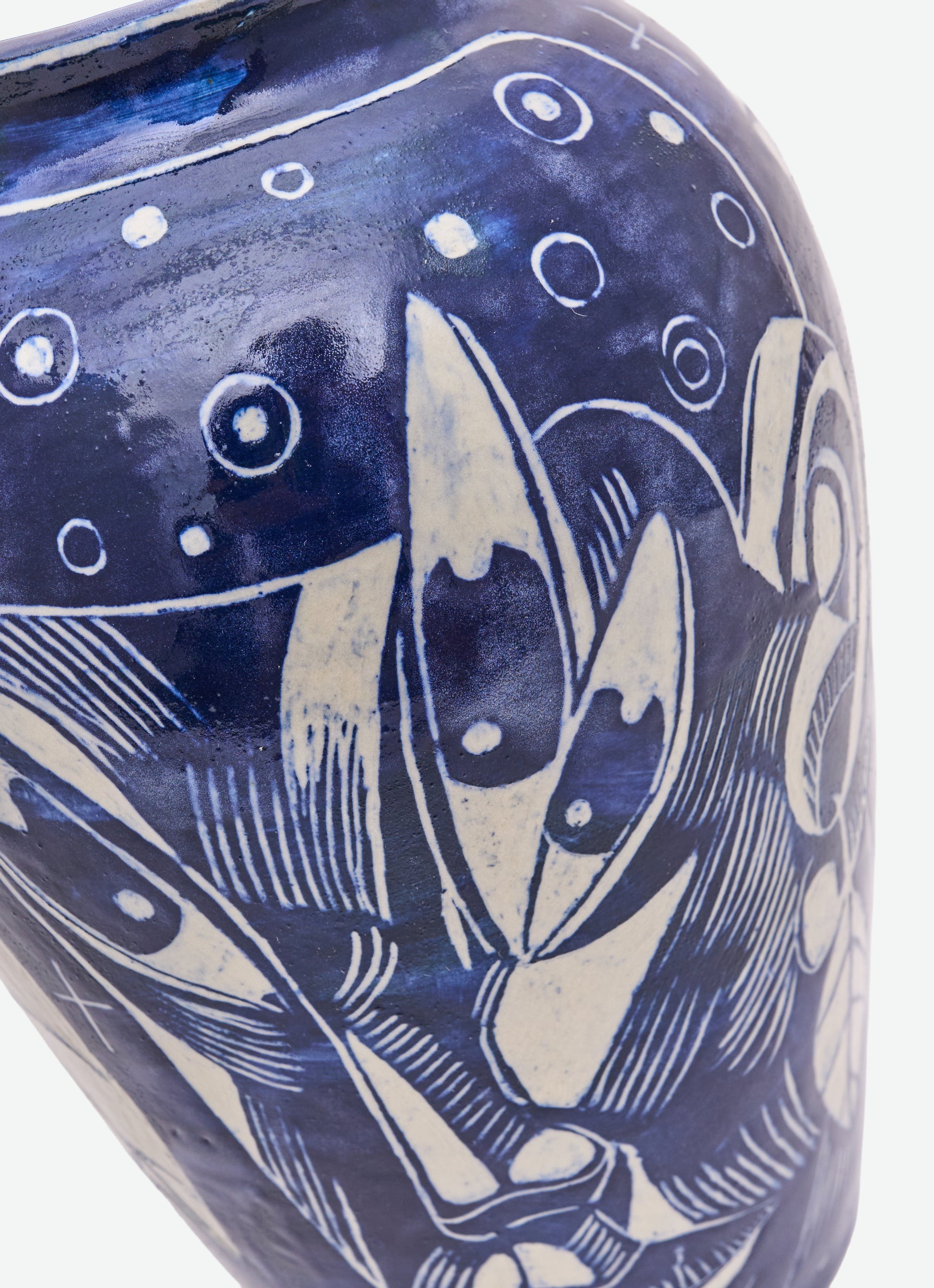 Wheel-thrown and sgraffito-carved ceramic, coated with Dark Cobble slip during the first firing. In the second firing, a transparent glaze is applied to the exterior and glaze no. 24 to the interior. The piece features a glossy finish inside and out, with a deep navy-blue tone that reflects quiet depth and fluid elegance.